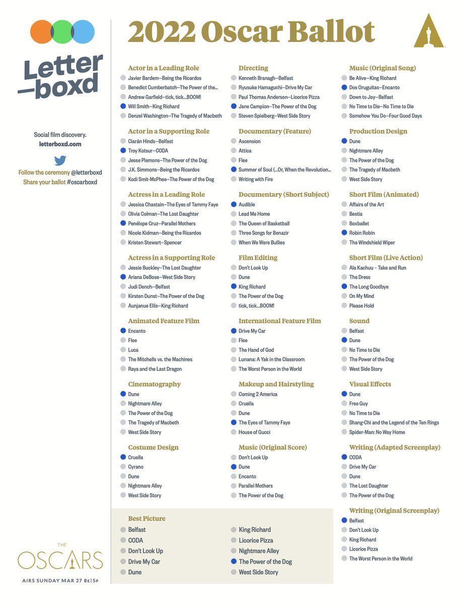 My Oscar ballot