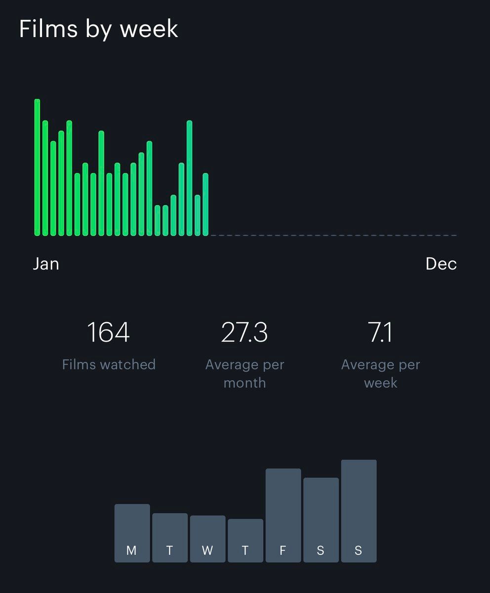 Currently 7 movies ahead of my 1/day average for the year. Need to go on a watching spree again to build up a larger buffer!