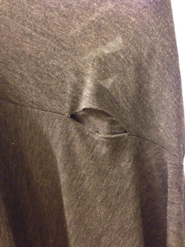 I did get stickers, which I am pumped about. The t-shirt also came with a big hole in the arm. What do I do?
