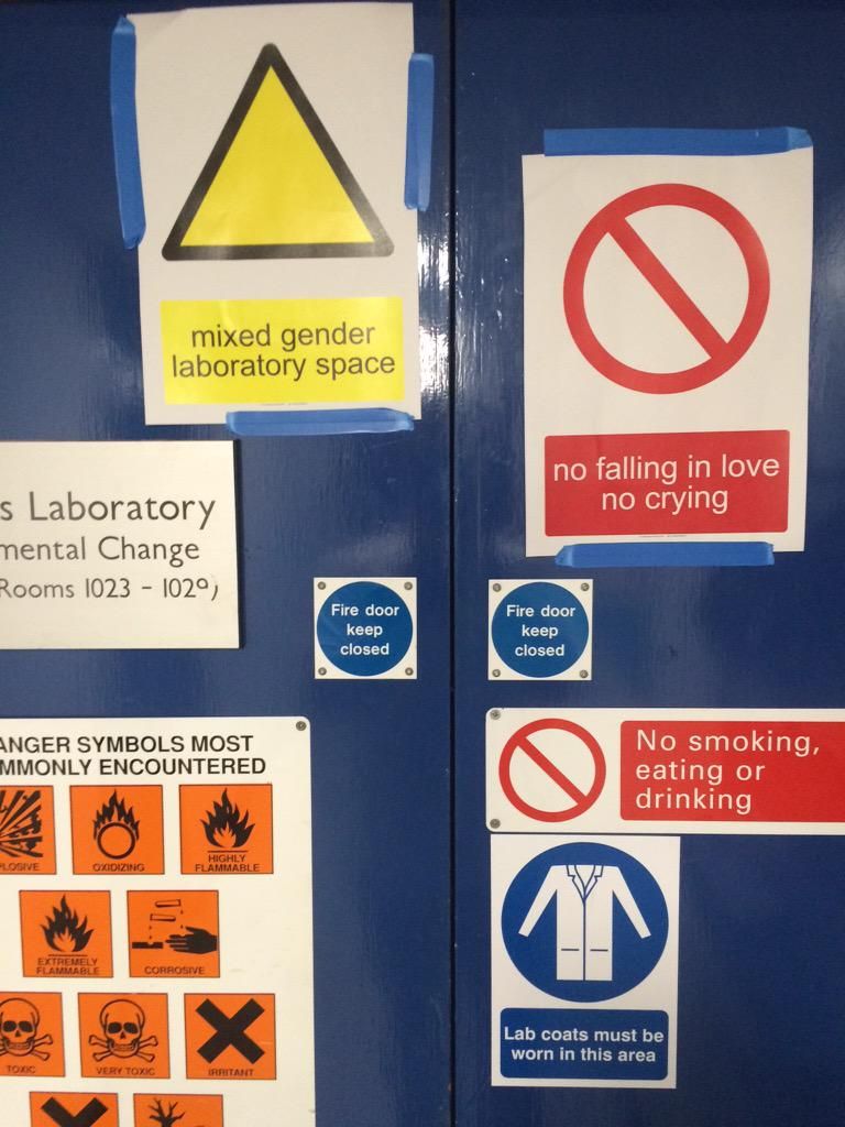 : Following Sir Tim Hunt's useful advice I've updated the laboratory signage #distractinglysexy