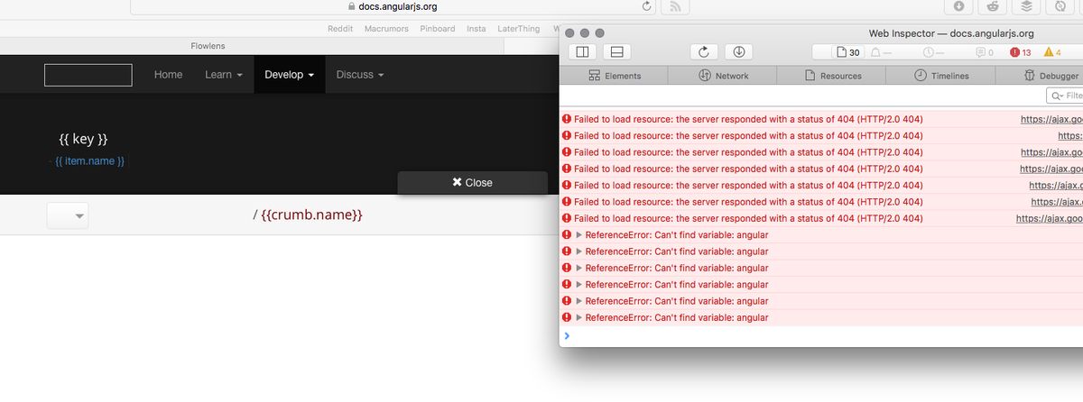 : That awesome feeling when the Angular JS docs are down due to an Angular JS error.