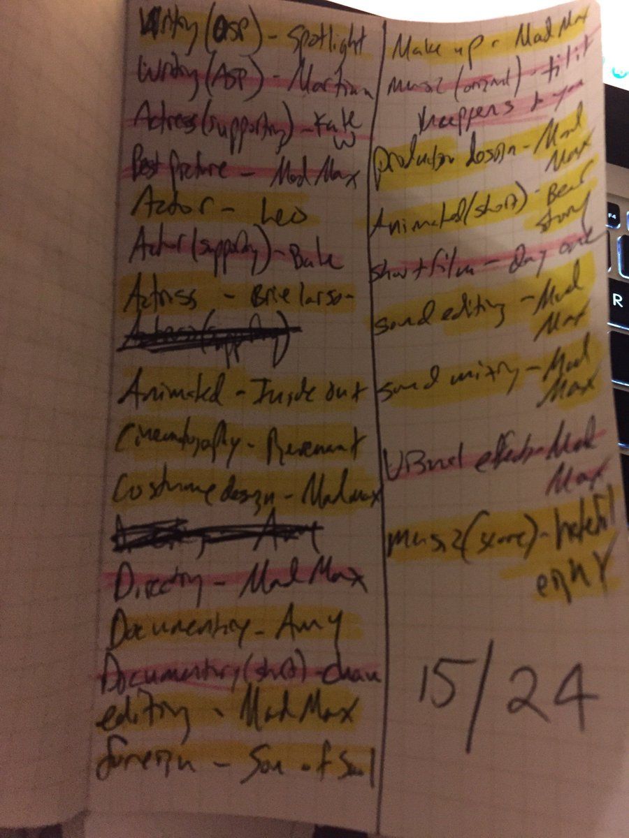 Ended up 15/24. Not bad. Missed lots of the big ones. #Oscars #oscars2016