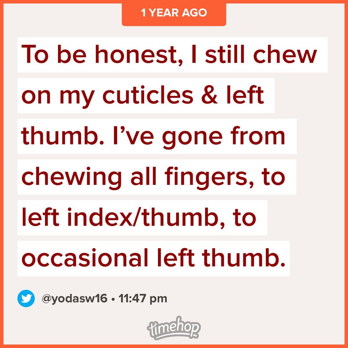 Nail biting update. I no longer chewy my nails at all, but I still bite the cuticles. I’ve come a LONG way on this habit, for sure.