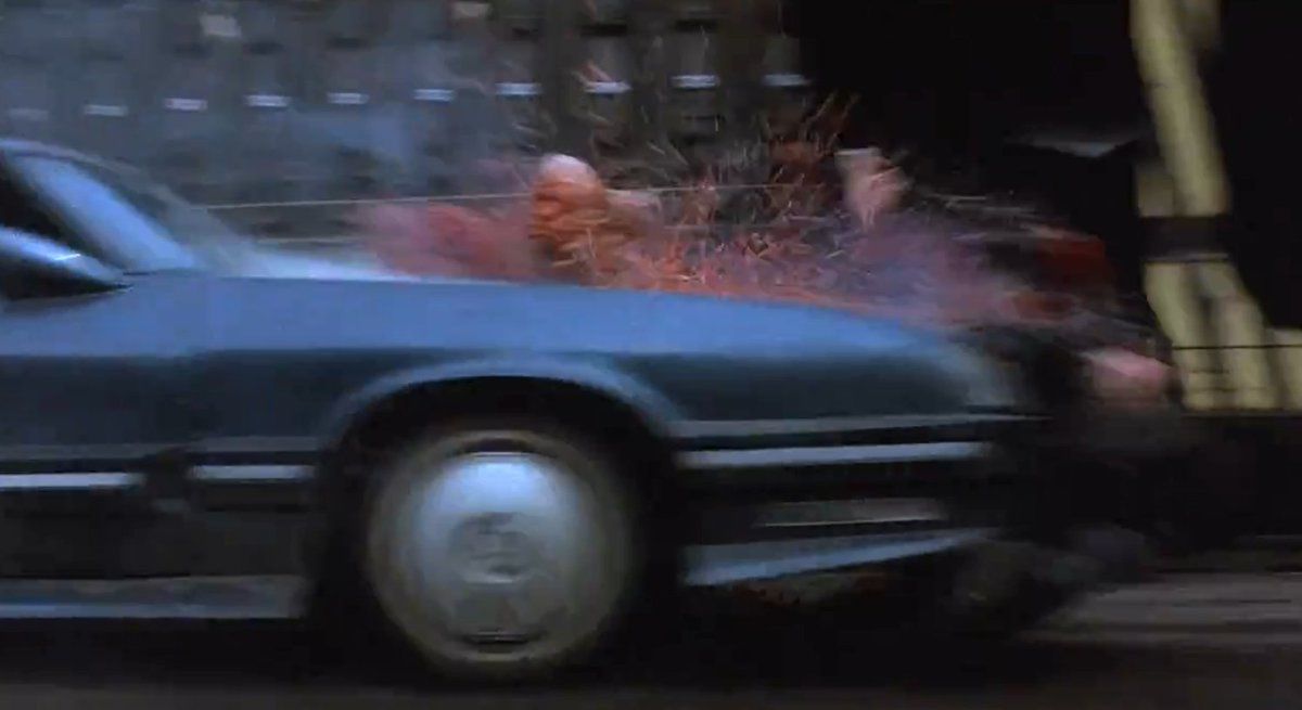 1. ROBOCOP (1987) is an insane movie. One of the bad guy characters drives into a huge drum of toxic waste and it instantly turns him into a mutant. Then the crime boss accidentally runs him over which both decapitates him and causes his body to explode.